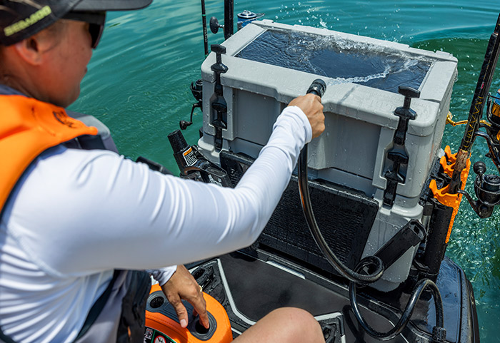 Conta ainda com display touchscreen de 10,25”, organizador no compartimento frontal, apoios inclinados para os pés, caixa térmica, suportes para varas e compartimento estanque.